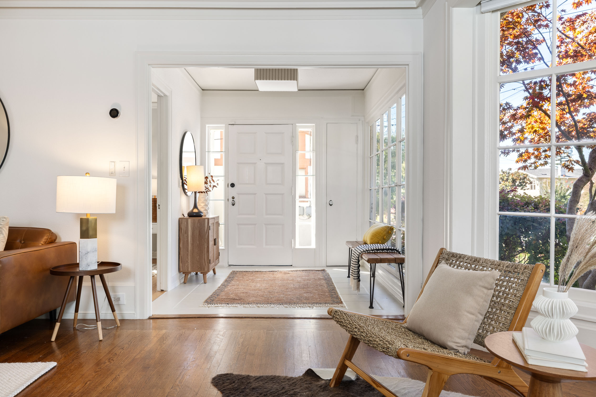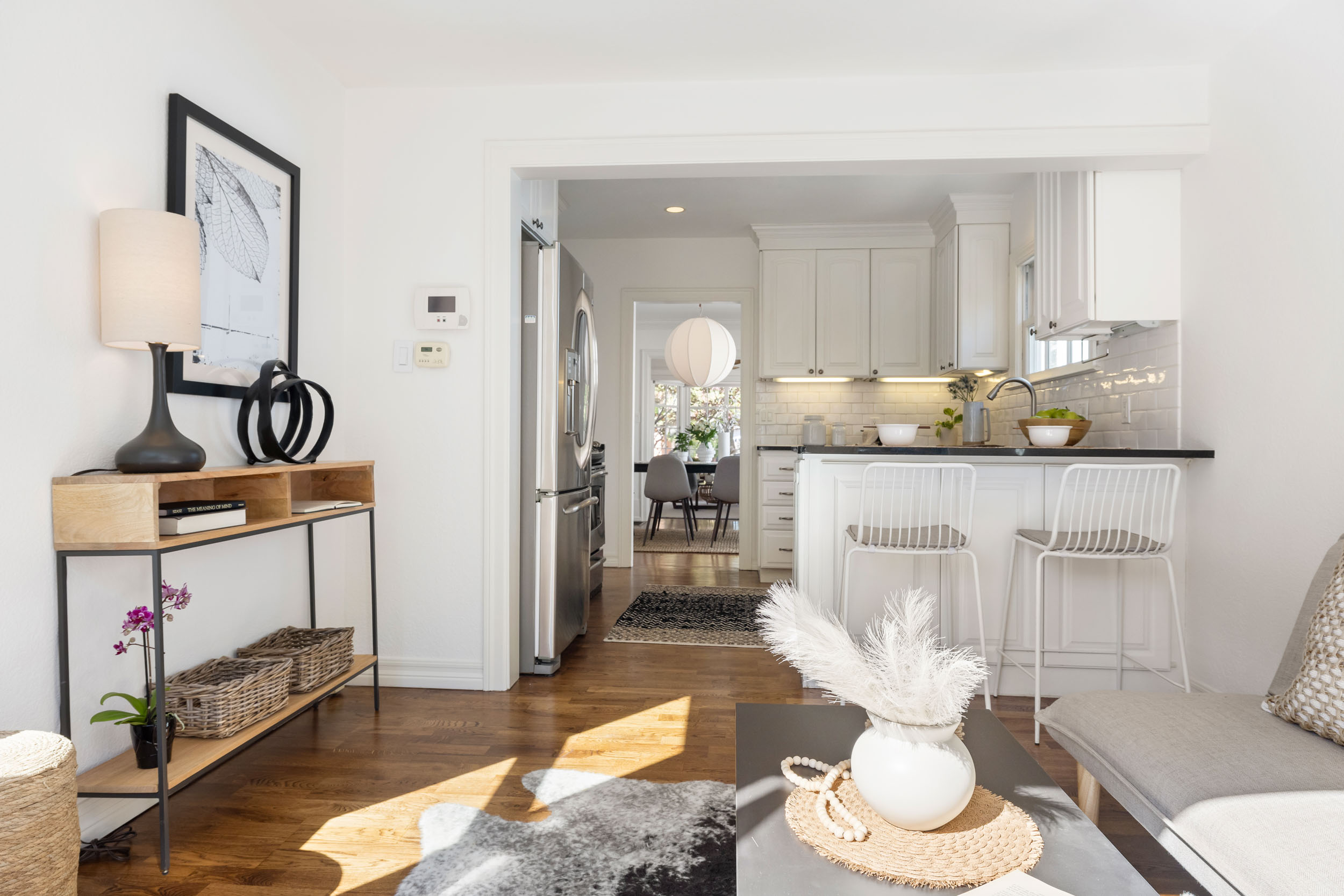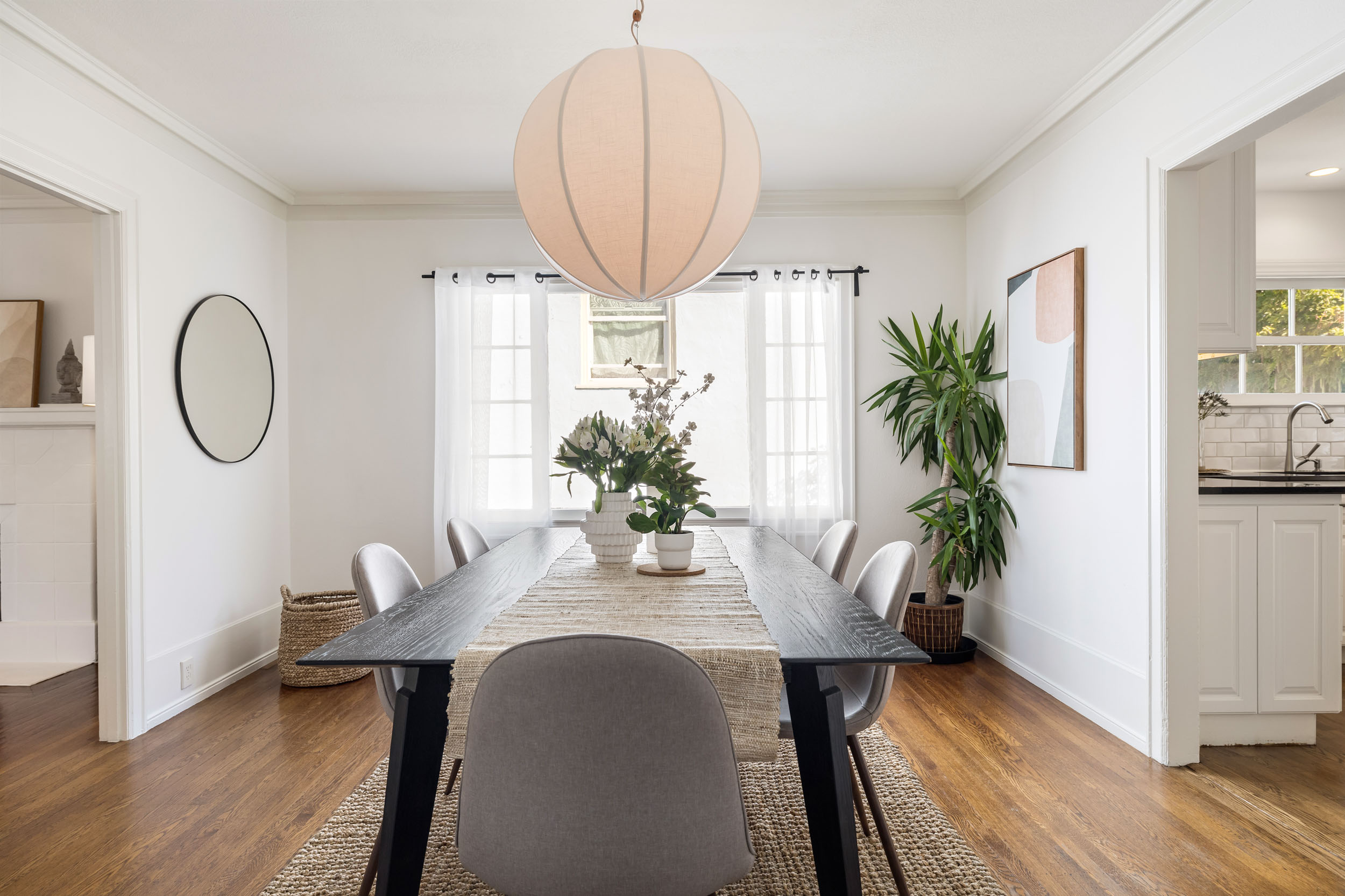 Set along one of Glenview’s most picturesque tree-lined streets, this three-bedroom, one-bathroom residence balances 1920s charm with thoughtful updates for modern living. Built in 1923, the home retains its period details while embracing a light-filled, welcoming aesthetic. A gracious formal entry leads into the living room, where a classic fireplace serves as the focal point and an oversized bay window floods the space with natural light. Just beyond, the elegant dining room is a study in contrasts—historic wall molding adds timeless character while a modern pendant brings a touch of contemporary style. The kitchen, designed with both function and beauty in mind, features a peninsula, crisp white cabinetry, and sleek black countertops. It flows into a comfortable family room that opens directly to the garden—perfect for entertaining or everyday ease.Three bedrooms provide flexible living. One bedroom, just off the front entry, enjoys a pass-through layout that makes it a versatile retreat. The primary, a few steps up, is wrapped with corner windows capturing morning light.