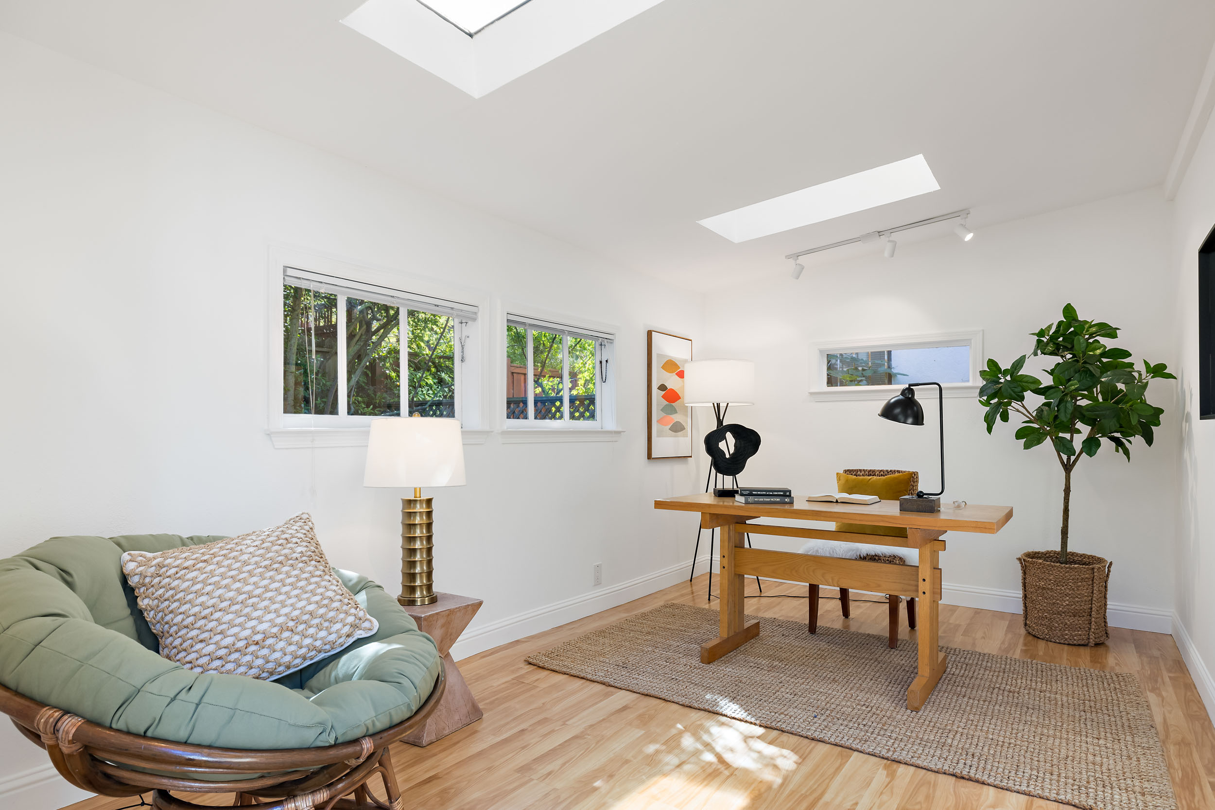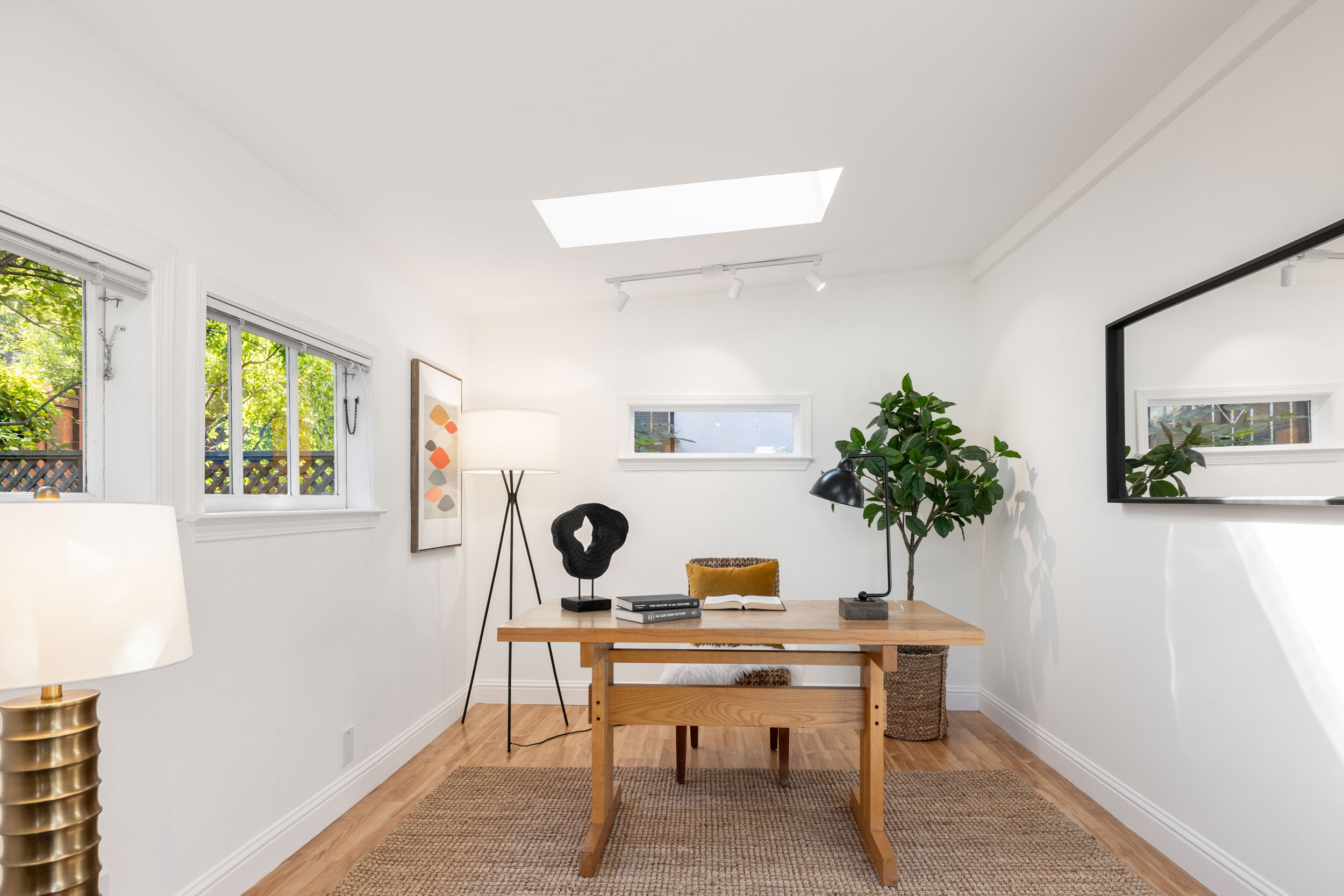 - Separate home office, fitness studio, or creative workshop with two skylights and keypad entry